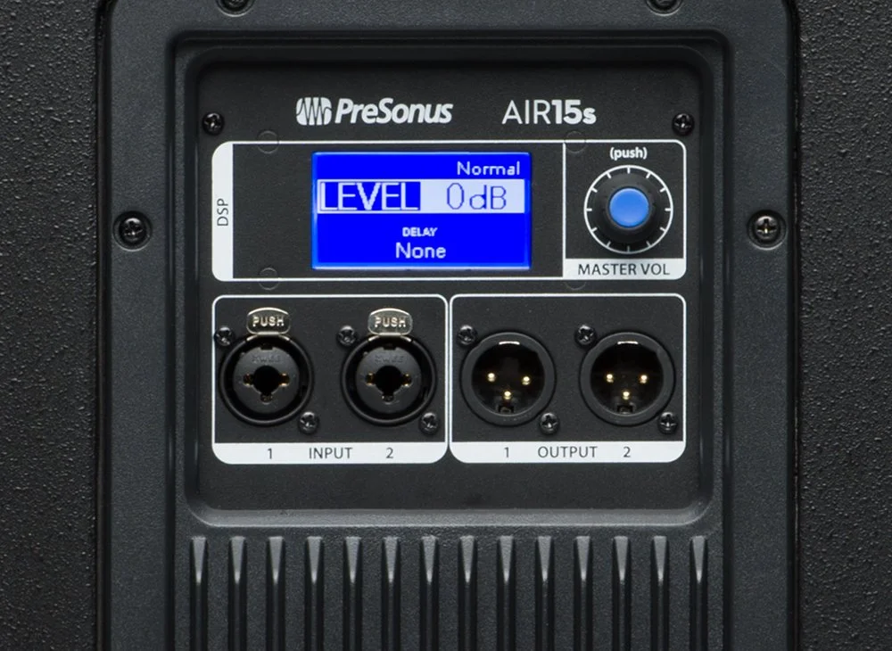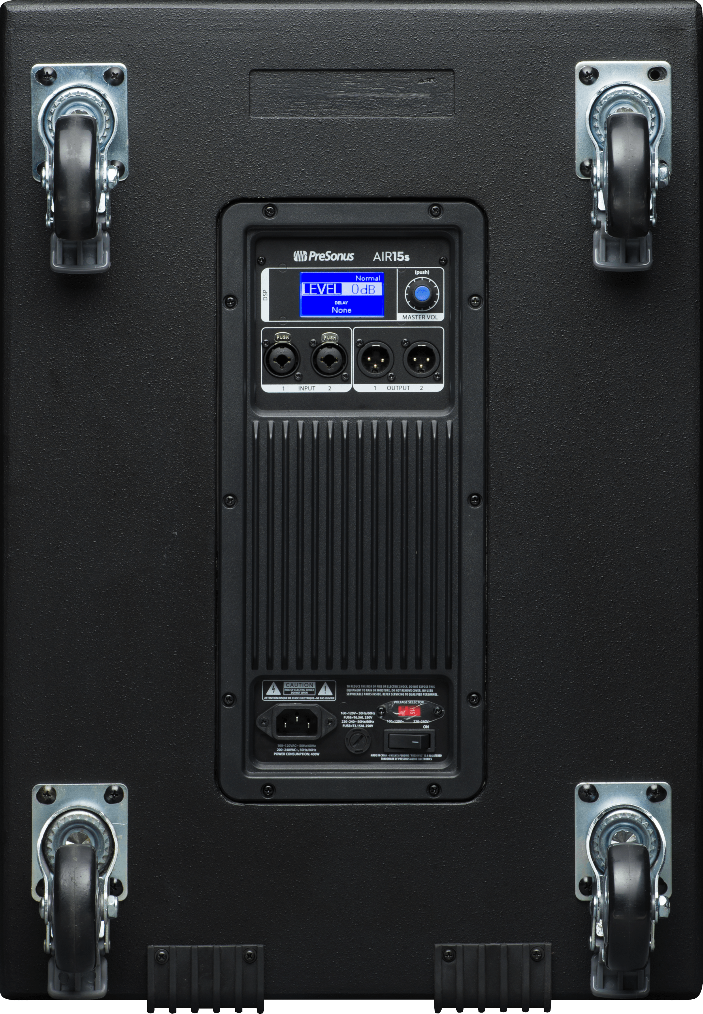 Designed to complement any full-range PA loudspeaker, and a perfect companion for the PreSonus® AIR series, the AIR15s active subwoofer delivers a powerful, clear and accurate low-end punch. With its 15-inch low-frequency transducer, driven by 1,200 watts (peak) of Class D power, it provides plenty of detailed bottom end, all the way down to 35 Hz.