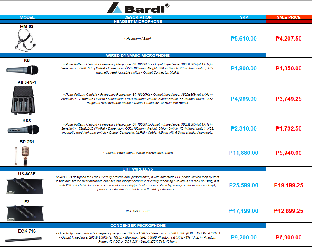 T.I. Pro Audio Musical Inst. EA Speaker Kustom PreSonus WorxAudio Reloop Ziko Bardl ACS Saramonic PowerWerkx