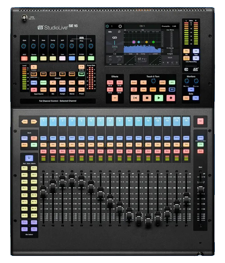 Our classic StudioLive 16.0.2 digital console mixer with USB 2.0 connectivity for small churches, schools, bands, clubs, and studios.