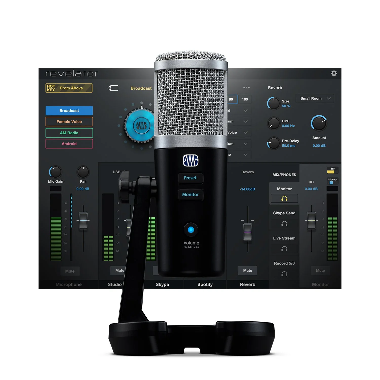 Our USB condenser microphone with StudioLive processing inside.
