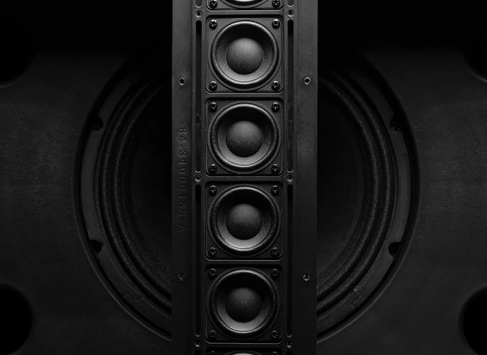 Each 2-inch speaker in the high-frequency driver array has a 1-inch voice coil, and the entire array is driven by a 500W Class D amplifier. Because the power is shared across six voice coils, power compression is reduced, resulting in an efficient design and a flatter phase response for less fatiguing listening and a refined, balanced sound.