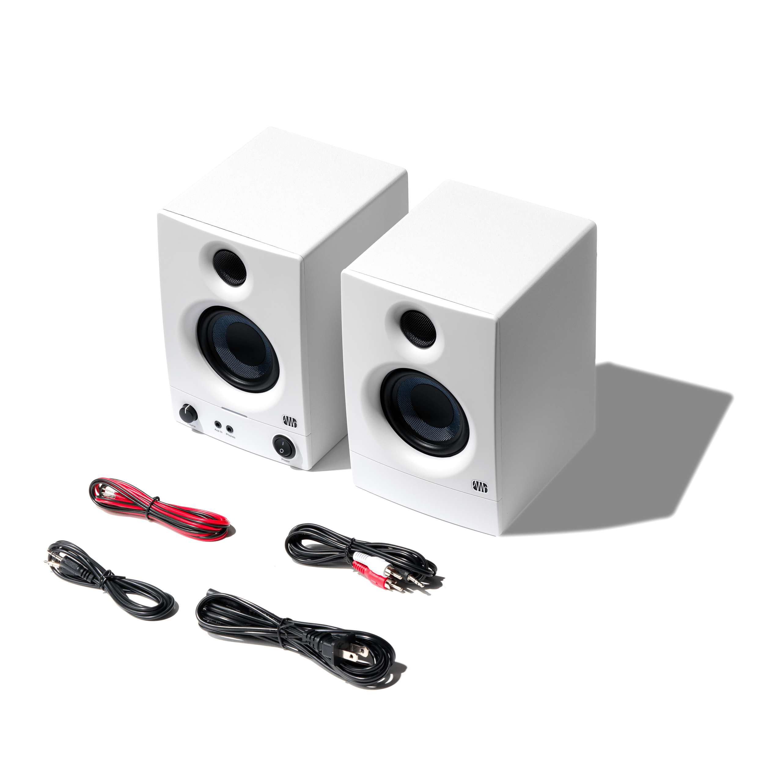 With 25 watts per side of onboard power, the Eris 3.5BT reference monitors pack a serious punch, while still delivering clear, accurate audio. The weave and nature of the Eris 3.5BT's 3.5-inch woofer result in tight bass that you can feel, as well as cleaner overall sound. The one-inch silk-dome tweeter produces refined high-frequencies and is designed to radiate sound with a wide pattern, creating a large optimal listening area. Improved speaker voicing over previous designs delivers richer lows and a smoother crossover transition for articulate, accurate transient reproduction through the frequency range and a less-fatiguing listening experience.