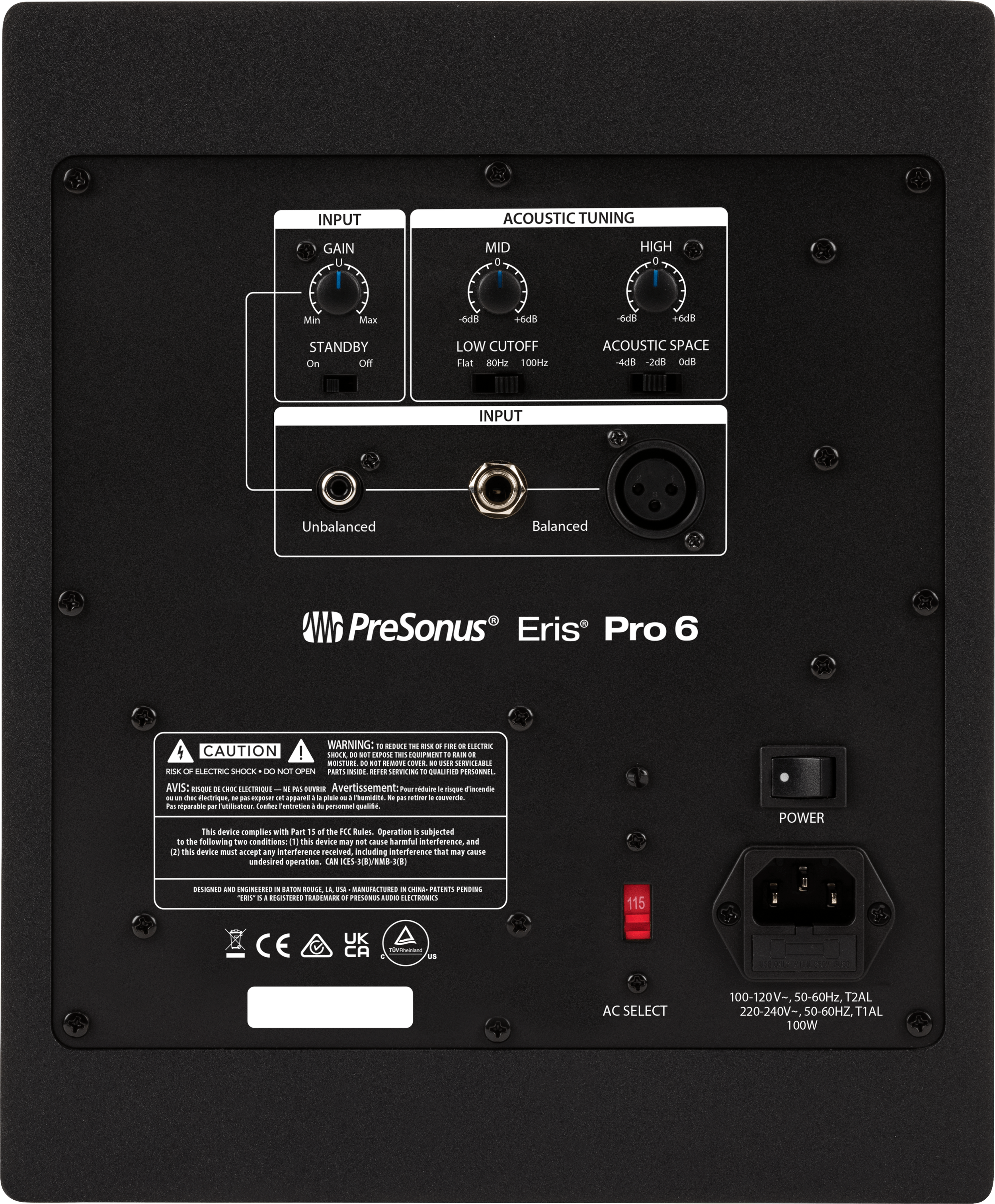 Acoustic tuning controls and a three-way Acoustic Space tuning lets you accurately configure the Eris Pro 6 for your room. Flexible input options enable connection to almost any line-level source, from mixers to audio interfaces and more. Provisions for wall and ceiling mounts make it easy to integrate Eris Pro 6 monitors into any stereo or multi-channel system.