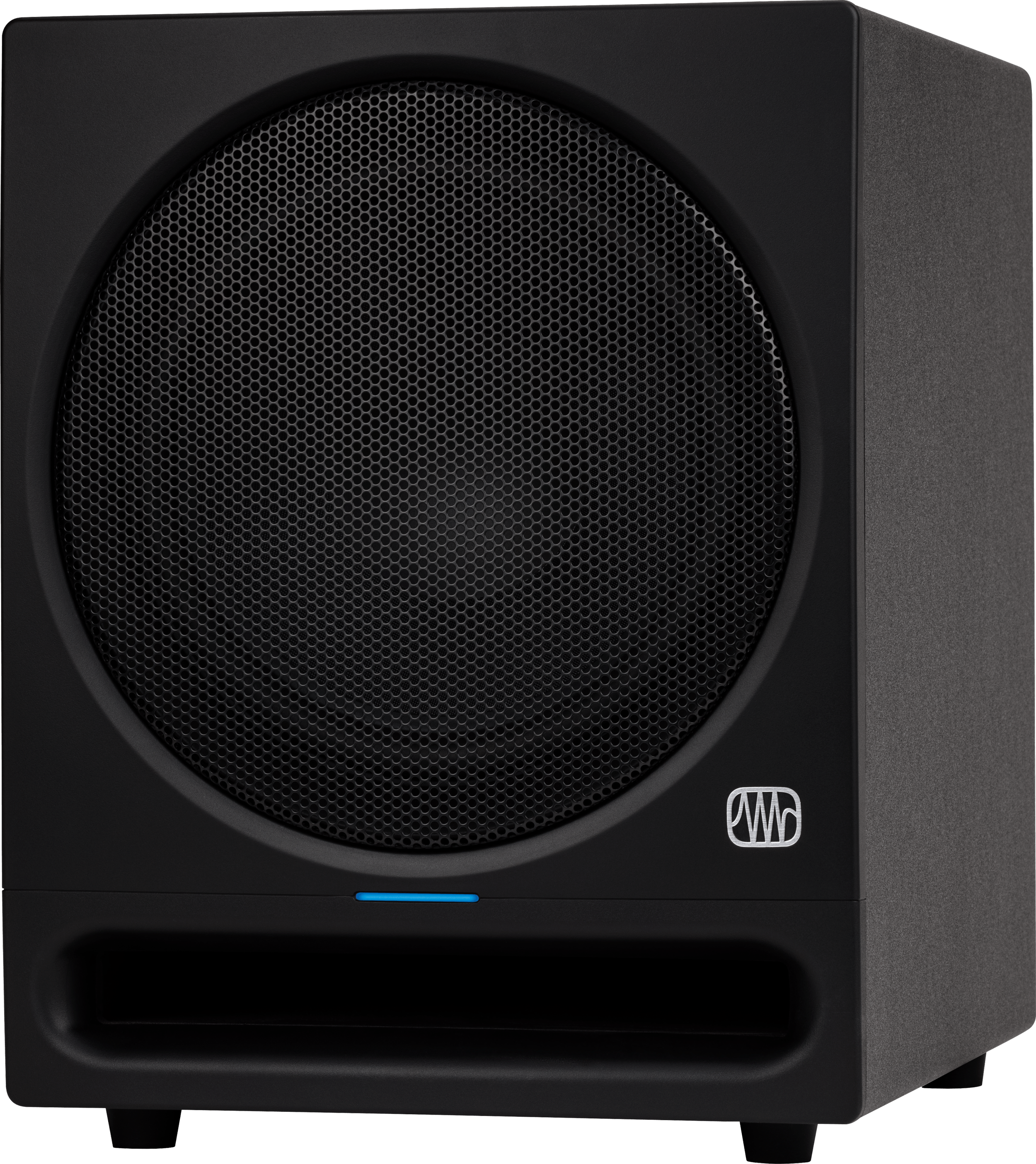 Our 10-inch active, front-firing studio subwoofer for stereo mix environments and Dolby Atmos immersive rooms.