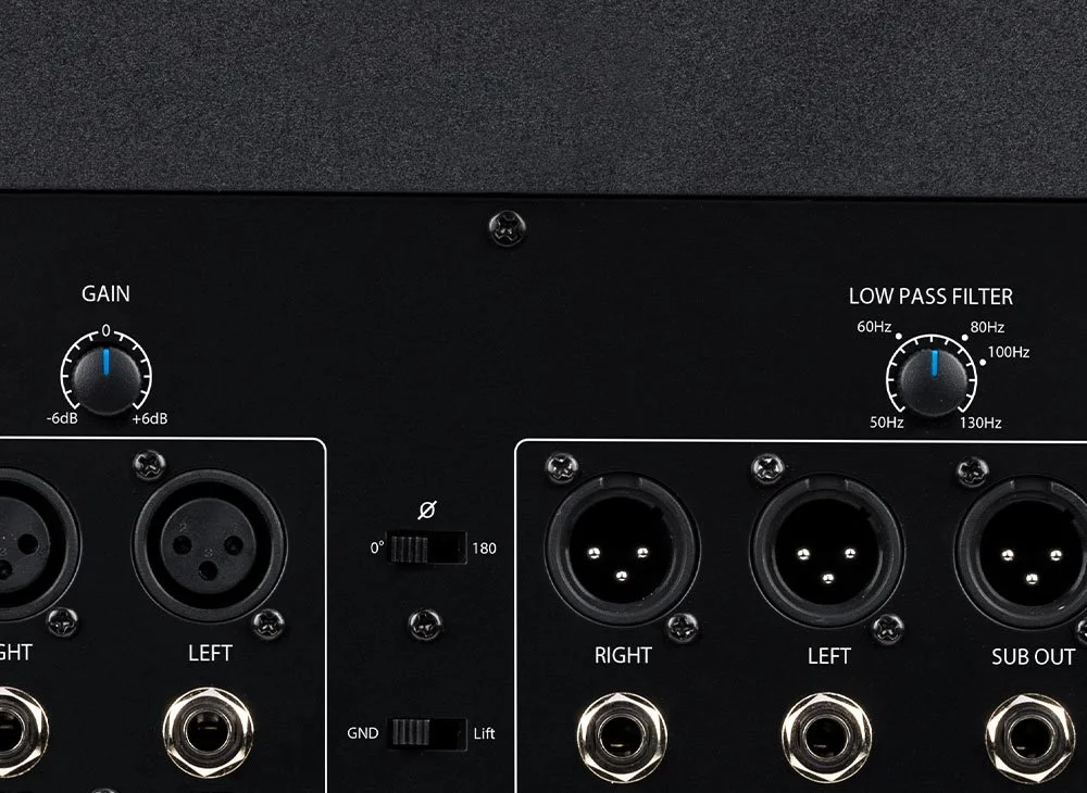 Extensive user controls include input gain, continuously variable lowpass filter for creating a seamless crossover transition, and a switchable highpass filter that removes content below 80 Hz from the full-range signal sent to the monitors. A continuously variable lowpass filter (50 Hz to 130 Hz) allows you to create a seamless crossover transition between the full-range studio monitors and subwoofer for the most accurate listening environment possible.