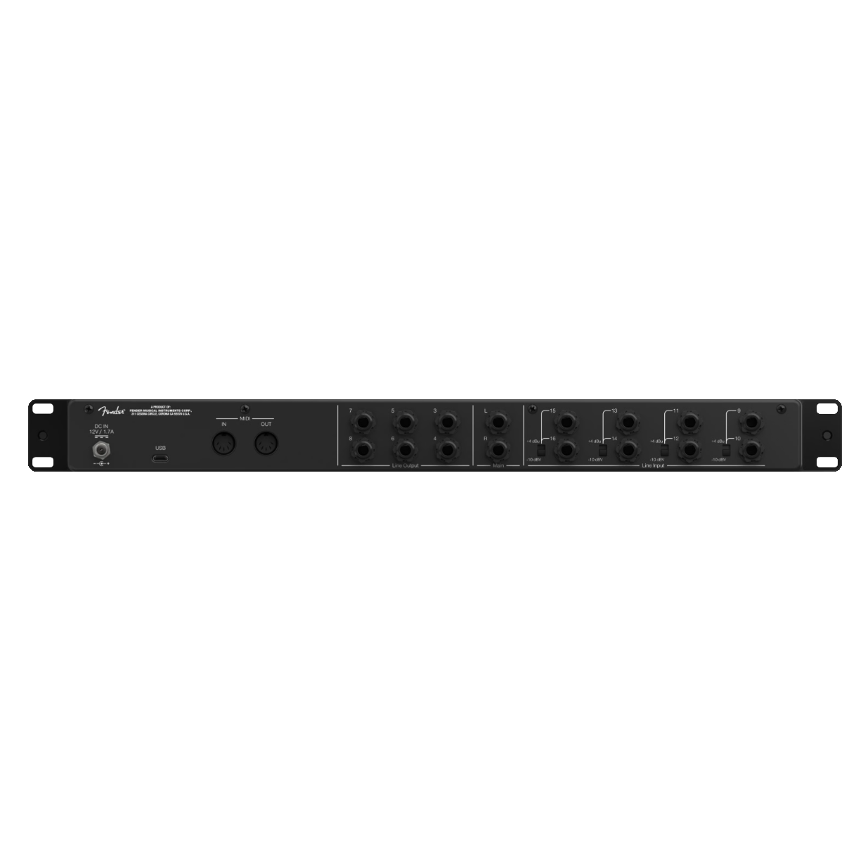 8 rear panel TRS inputs with switchable 4 dBu / -10 dBV operation