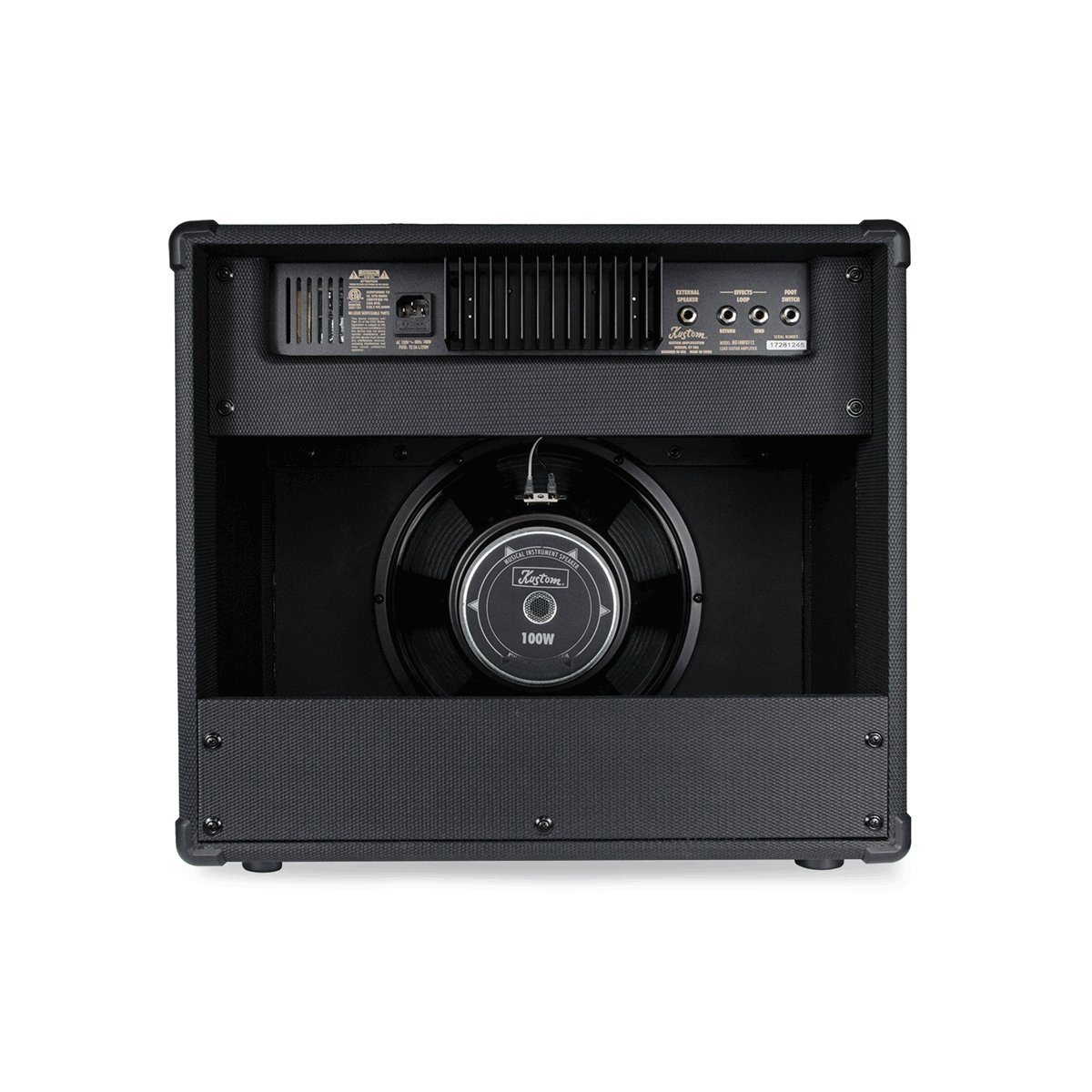 The Kustom KG100FX112 is a two-channel combo amp offering 100 watts of clear, classic tone perfect for a variety of musical styles. It’s equipped with a single 12-in. Kustom speaker. In addition to its two channels (Rhythm and Lead), it includes onboard digital effects (reverb, delay and chorus). The KG100FX112 features a speaker out jack, allowing you to hook up an external cab. You can also jam to songs or practice silently thanks to its auxiliary in, and headphone out jacks.