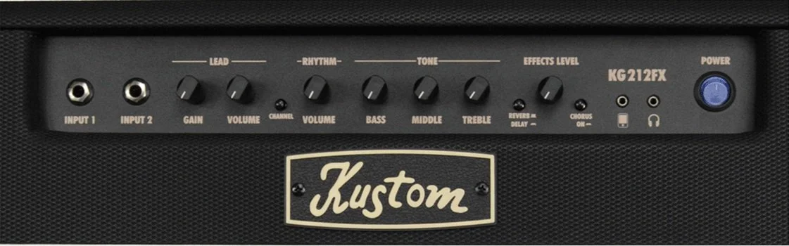 The Kustom KG212FX is a 30-watt guitar combo amplifier with two 12-inch Kustom speakers, two channels, and reverb, delay and chorus effects. It is designed to offer a wide range of clean and dirty tones, while providing rugged dependability and intuitive operation.