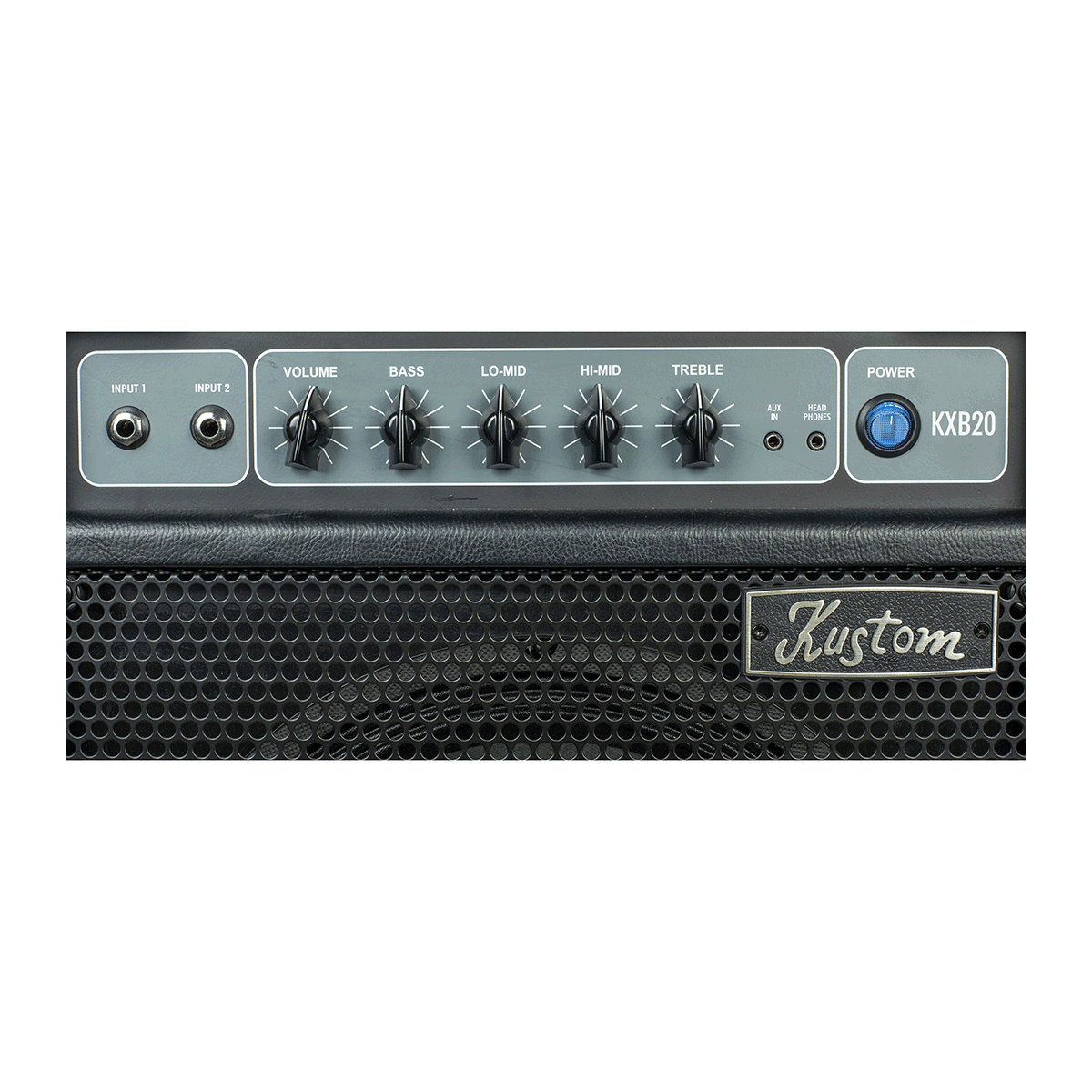Kustom KXB Series amplifiers are focused on producing great tone, rugged reliability and intuitive tone-shaping tools. The Kustom KXB20 is a 20-watt bass combo amplifier with a 12-inch Kustom speaker and Bass, Lo-Mid, Hi-Mid and Treble controls. It provides the right amount of power and EQ to dial in classic, thumping bass tones as well as more aggressive, modern tones. Like every KXB amplifier, the KXB20 offers an auxiliary input for plugging in an MP3 or CD player to practice along with tunes and a 1/8-inch headphone input that silences the internal speaker for late-night playing so you can be a good neighbor.