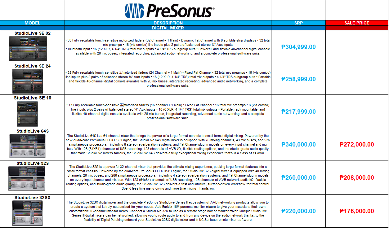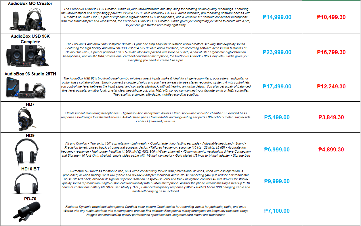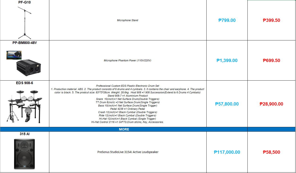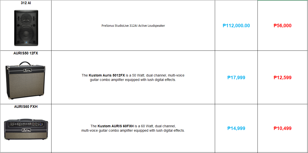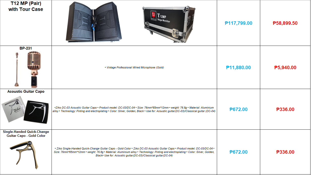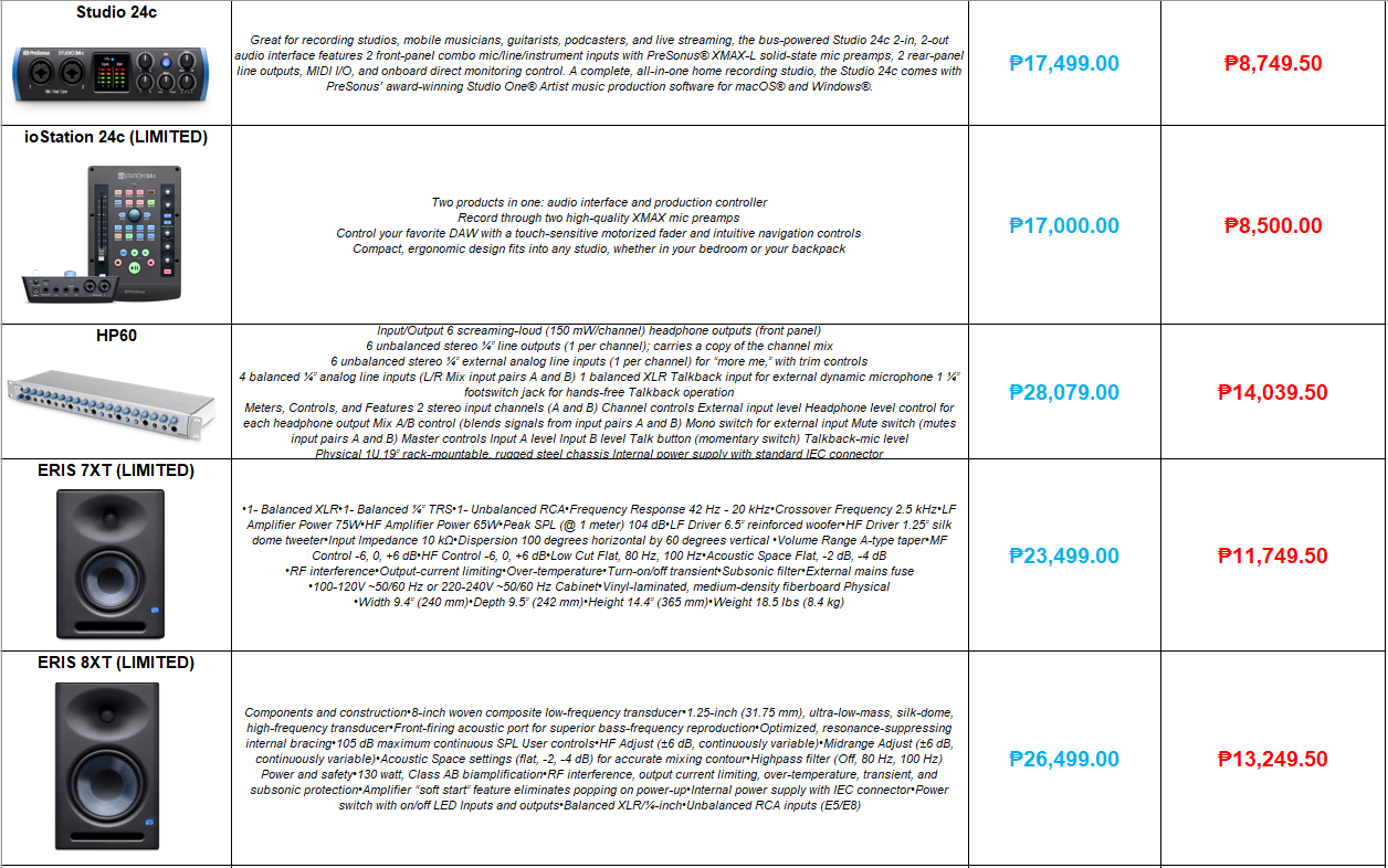 T.I. Pro Audio Musical Inst. EA Speaker Kustom PreSonus WorxAudio Reloop Ziko Bardl ACS Saramonic PowerWerkx Enjoy savings up to 50% off on selected items! There’s more, continue scrolling!