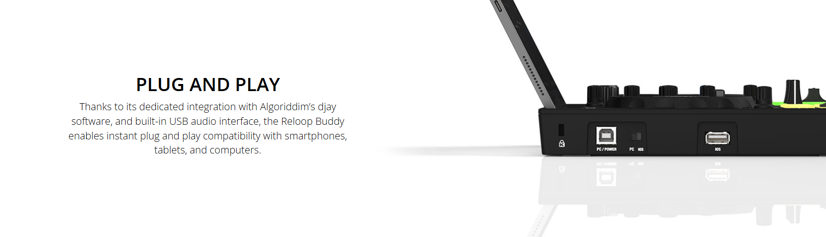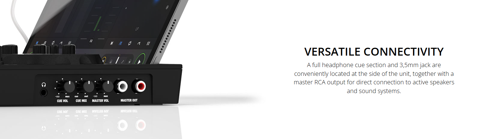 "Zusammen mit Smartphone oder Tablet und Algoriddims djay-Software entsteht dank des integrierten Audiointerfaces ein leistungsstarkes, ortsunabhängiges Mini-Setup und die Welt wird zum Dancefloor."