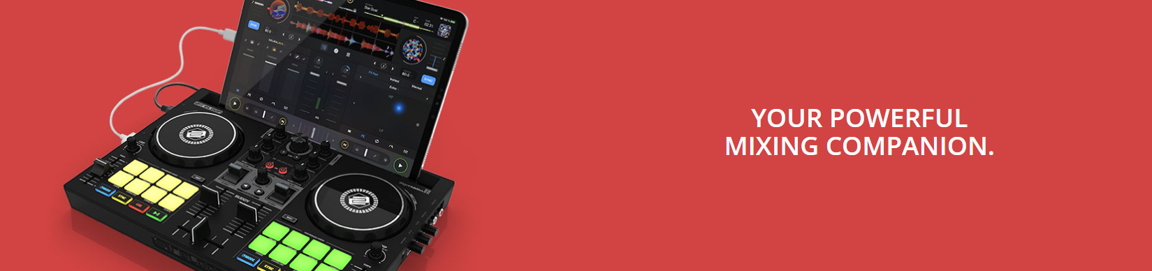 This compact and powerful 2-channel DJ controller was designed and developed in close partnership with Algoriddim for the tightest integration possible with their award-winning djay app.
