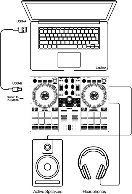 Built-in USB audio interface: directly connect active speakers and headphones to start mixing from your music library or streaming services²