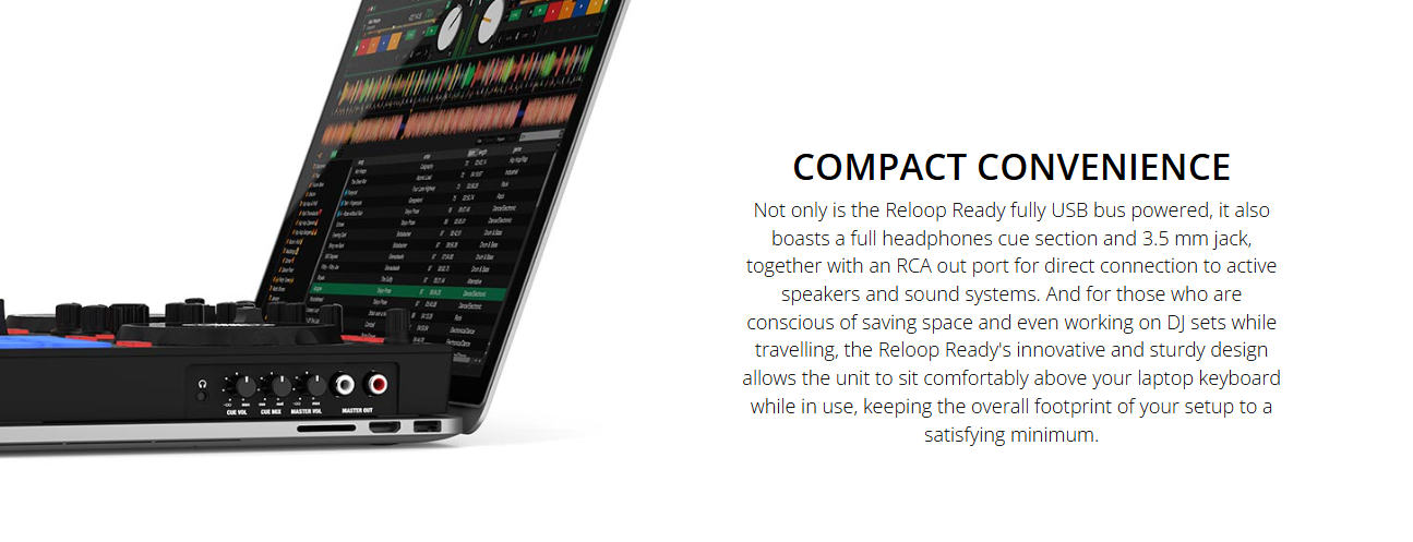 As lightweight as it is powerful, as compact as it is versatile - the Reloop Ready balances first-rate functionality in a practical design for DJs to perform at their highest level whilst maximizing portability and minimizing space.