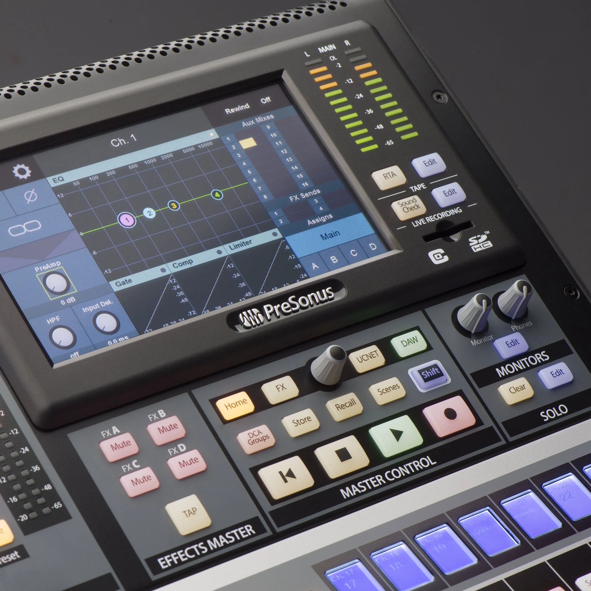 The StudioLive 32SX also ships with PreSonus Capture® recording software, which can be run directly on your mixer or Windows or Mac computer. Record all 32 channels plus a stereo mix of your choosing via USB, to an SD Card, or both for the ultimate redundant live recording rig.