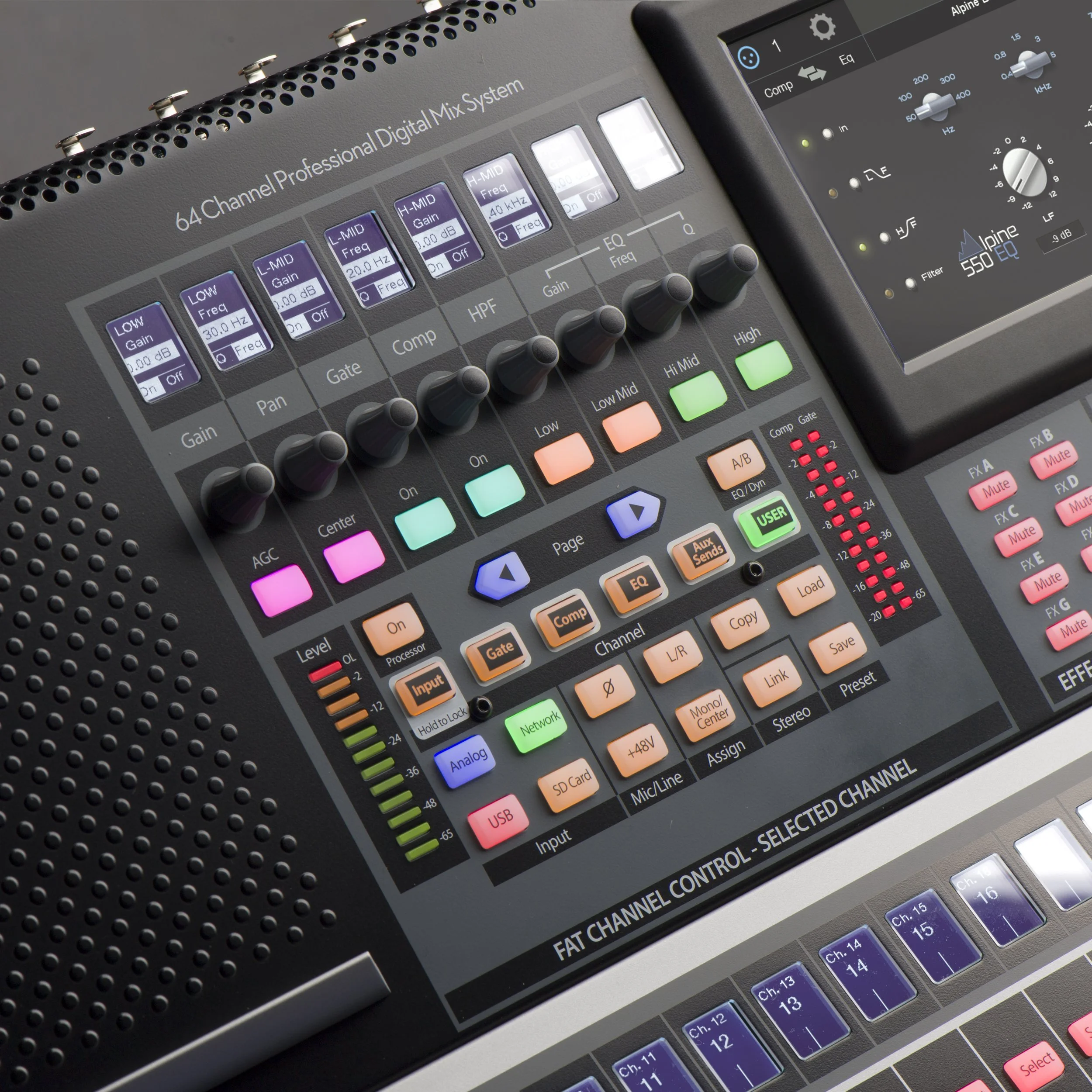 Powerful and flexible 76-channel digital console available for installed sound, touring, and recording with quad-core FLEX DSP Engine powering 526 simultaneous processors