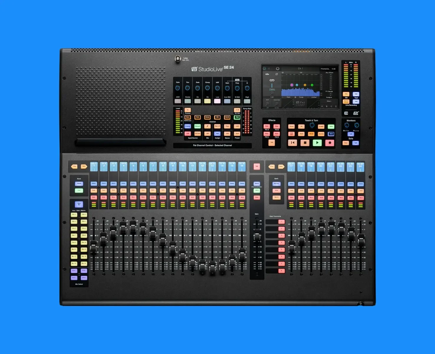 Powerful and flexible 40-channel digital console available with 26 mix buses, integrated recording, advanced audio networking, and a complete professional software suite.