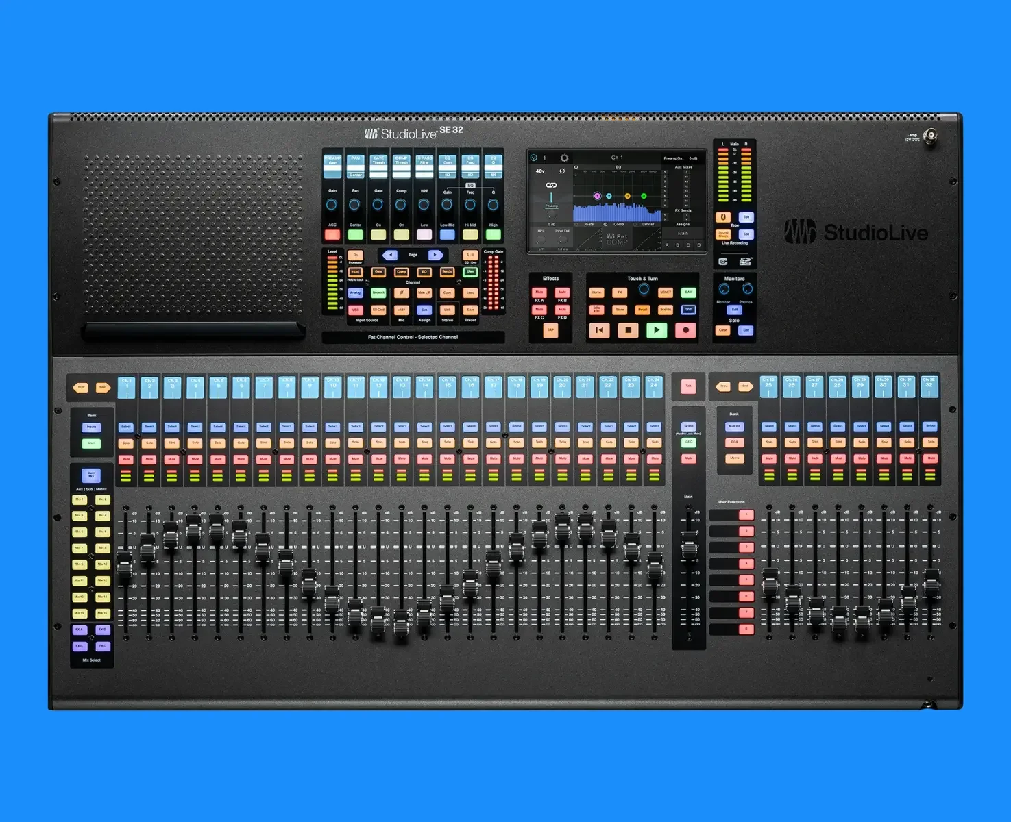 33 Fully recallable touch-sensitive motorized faders (32 Channel + 1 Main)