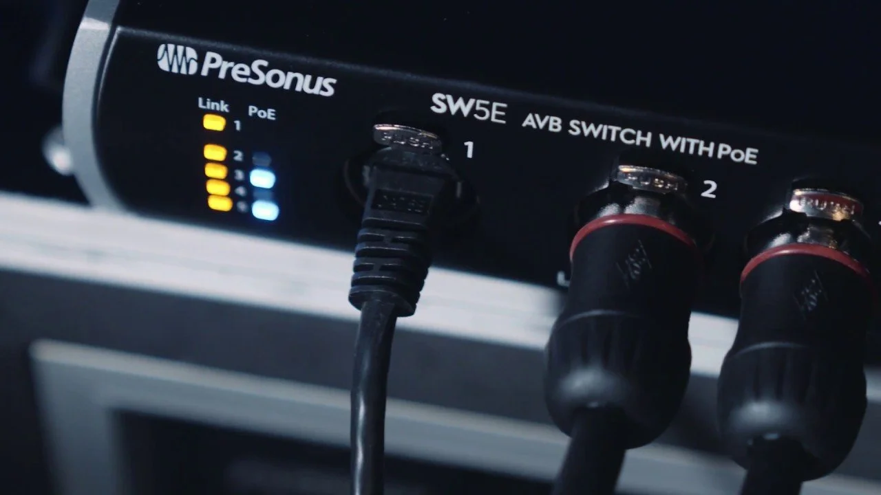 The PreSonus® SW5E AVB switch fully complies to the AVB standard while providing Power over Ethernet (PoE) to devices that can take advantage of it, like the PreSonus EarMix 16M.