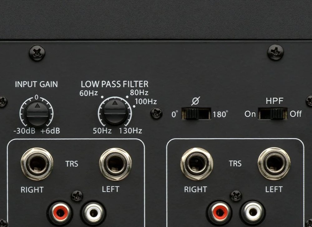 Audio Controls - Input Gain Range: -30 to +6 dBPolarity Switch: 0 degrees or 180 degreesLow Pass Filter Control: 50 Hz to 130 HzHigh Pass Filter Switch: On/Off